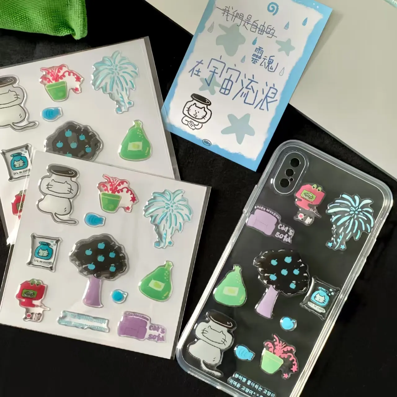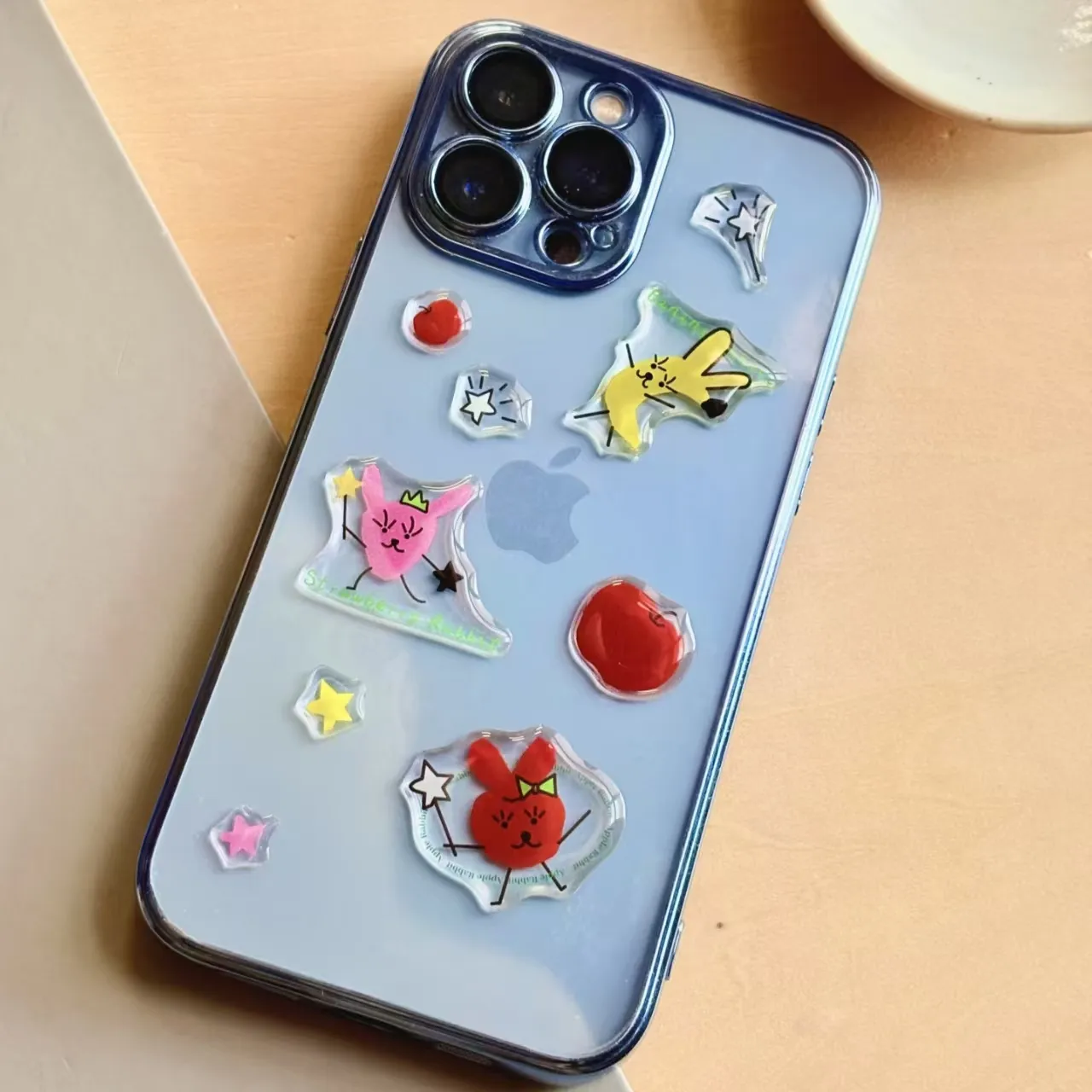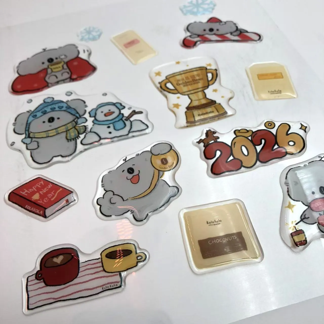 Pelekat resin epoksi kartun 3Dialah pelekat 3D tersuai yang menampilkan reka bentuk bertema kartun. Setiap pelekat disalut dengan lapisan resin epoksi ketelusan tinggi, yang diawet melalui proses gam titisan untuk menghasilkan tekstur terangkat yang gebu, licin dan elastik.