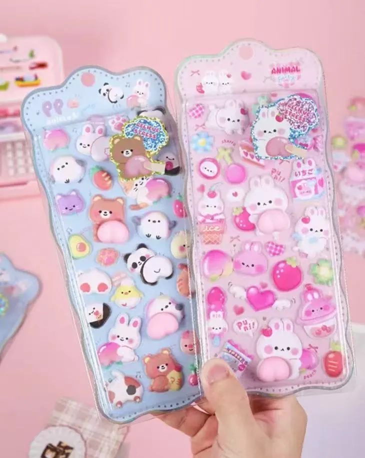 Reka bentuk 3D: Tidak seperti pelekat rata, ini mempunyai tekstur yang dibangkitkan dan bengkak yang mewujudkan rupa dimensi yang suka bermain di permukaan.