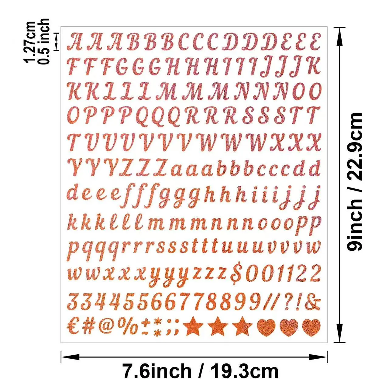 Ia termasuk set lengkap 26 huruf besar Inggeris dan 0-9 nombor, bersama-sama dengan simbol asas, membenarkan gabungan percuma untuk mengeja perkataan, nama, nombor, dll. Ia merangkumi pelbagai senario seperti hiasan diari, perkataan tema parti, hiasan hadiah dan alat tulis DIY, memenuhi pelbagai keperluan penggunaan dengan satu pelekat.