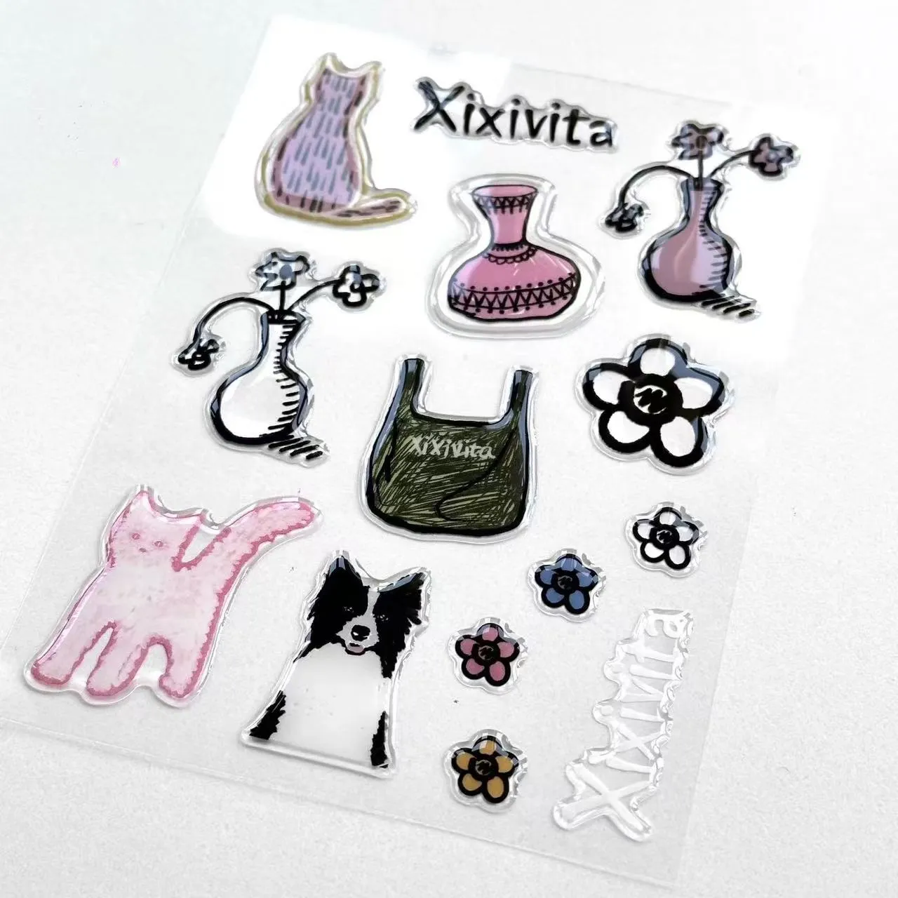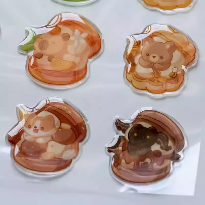 Pelekat epoksi kartun menyampaikan kilauan yang licin dan berkilat yang menguatkan getaran warna dan kejelasan. Permukaan berkilat ini mencerminkan cahaya, membuat reka bentuk bercetak kelihatan lebih jelas dan profesional.