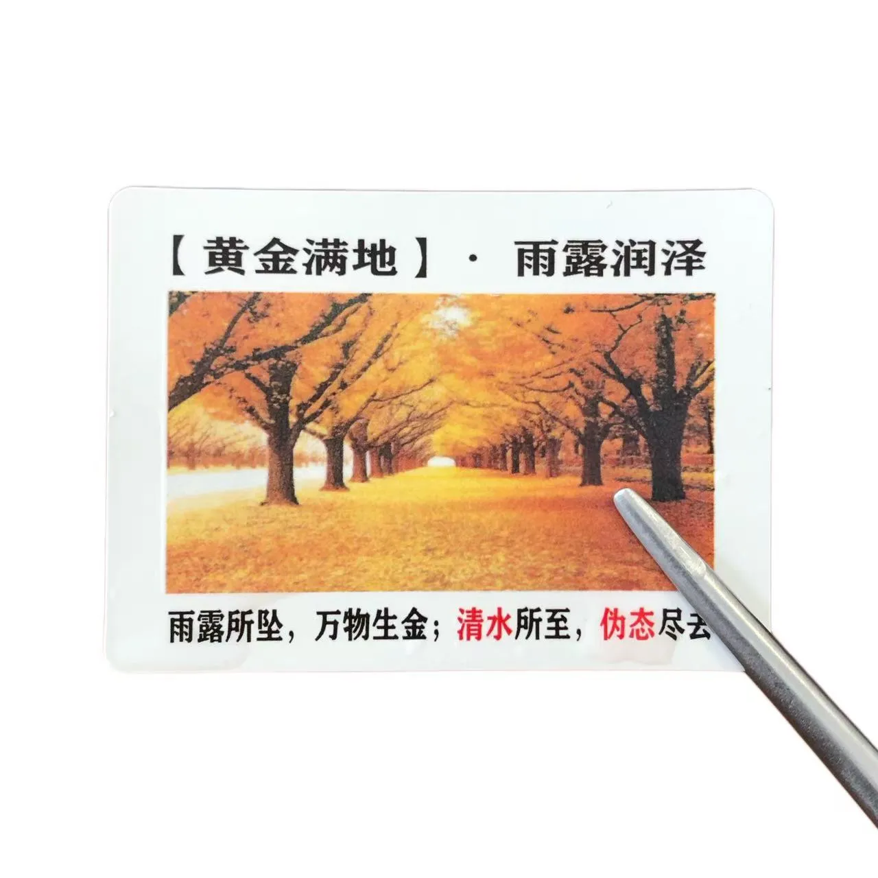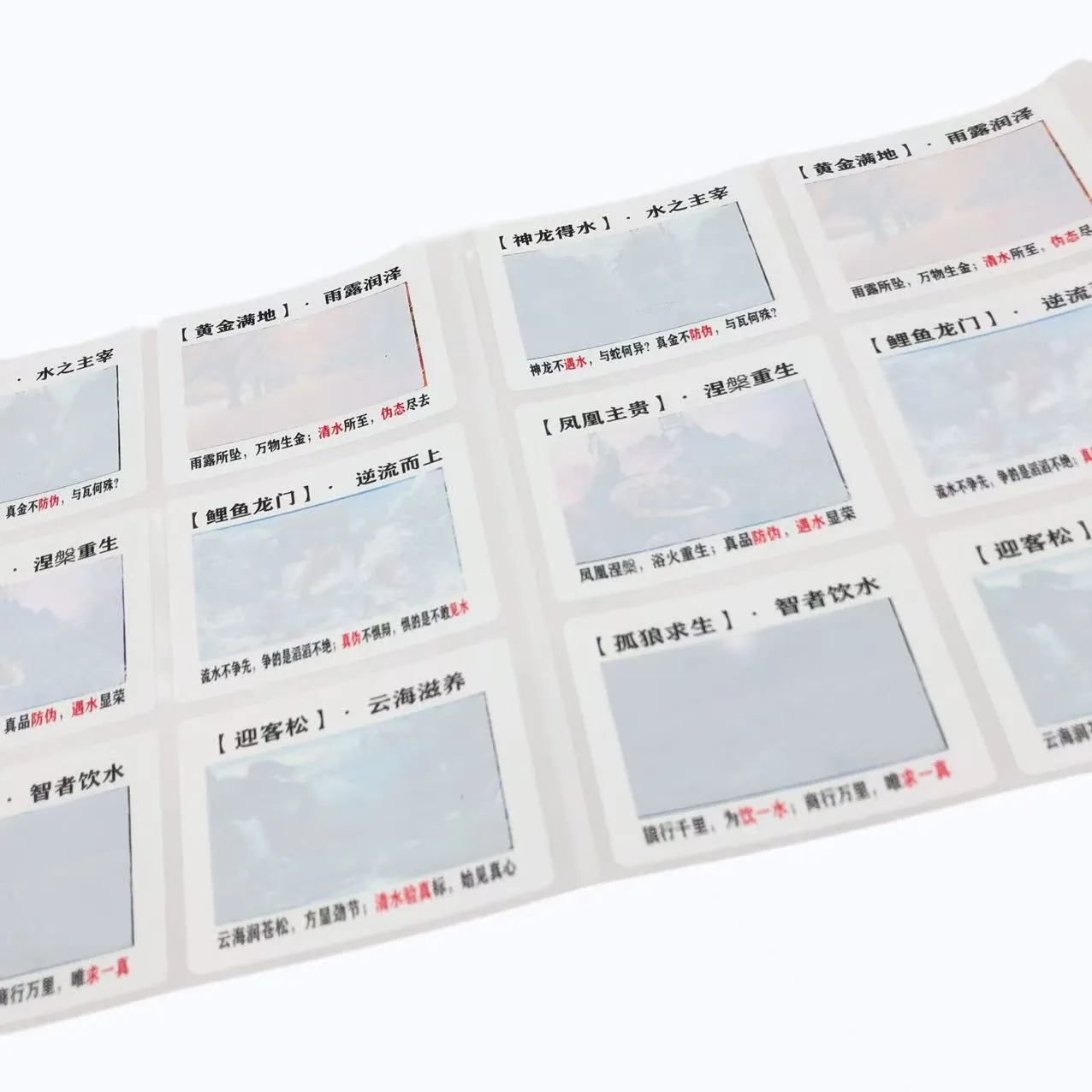 Hanya percikan air kecil sahaja yang diperlukan untuk mengaktifkan tindak balas label. Ringan dan mudah alih, label boleh dibuat dalam pelbagai bentuk seperti kad dan cetakan gaya foto segera.Pek JOJOmenyediakan perkhidmatan penyesuaian, kami boleh mencetak corak kartun, logo jenama, kandungan promosi dan banyak lagi pada label. Ia sesuai untuk kad ucapan perayaan, mainan pendidikan kanak-kanak, pemasaran jenama, anti-pemalsuan dan aplikasi lain.