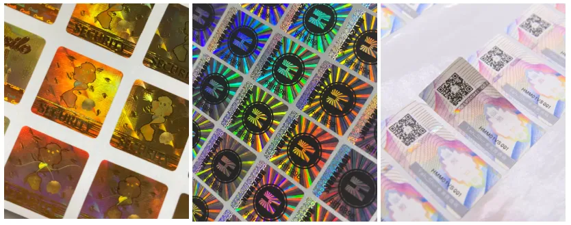 4. Label anti-pemalsuan Holographic: Label jenis ini mengandungi permukaan reflektif pelbagai lapisan, boleh dari sudut yang berbeza menunjukkan imej dan corak perubahan, sukar untuk ditiru, dan boleh digunakan sebagai tanda anti-pemalsuan visual.