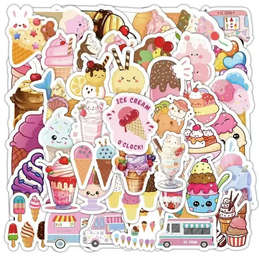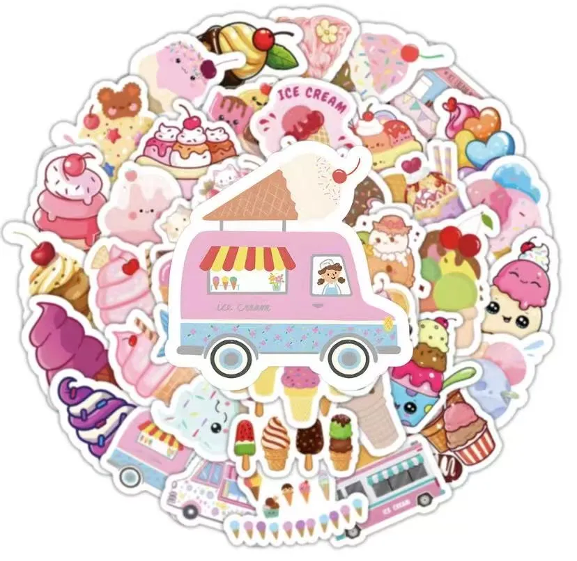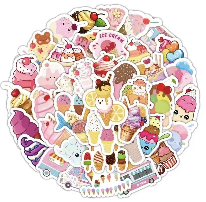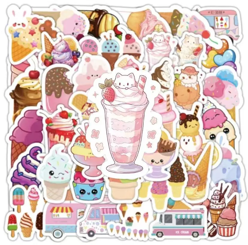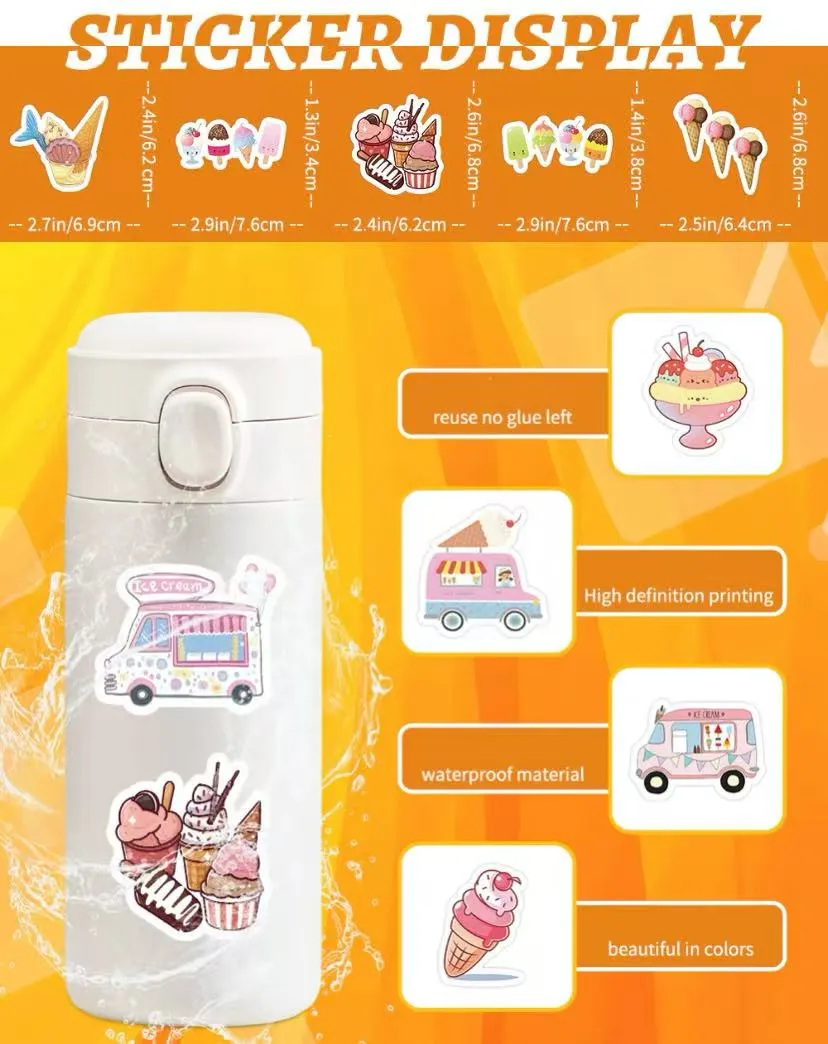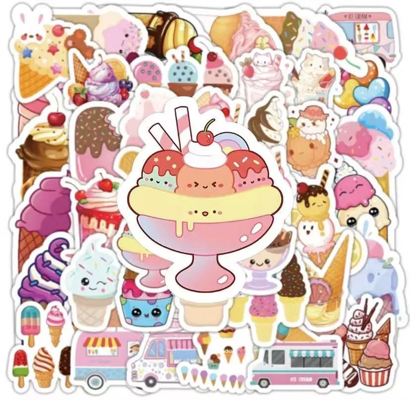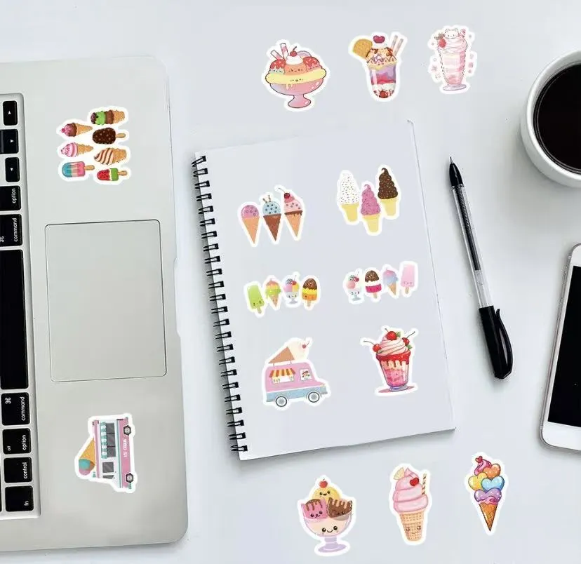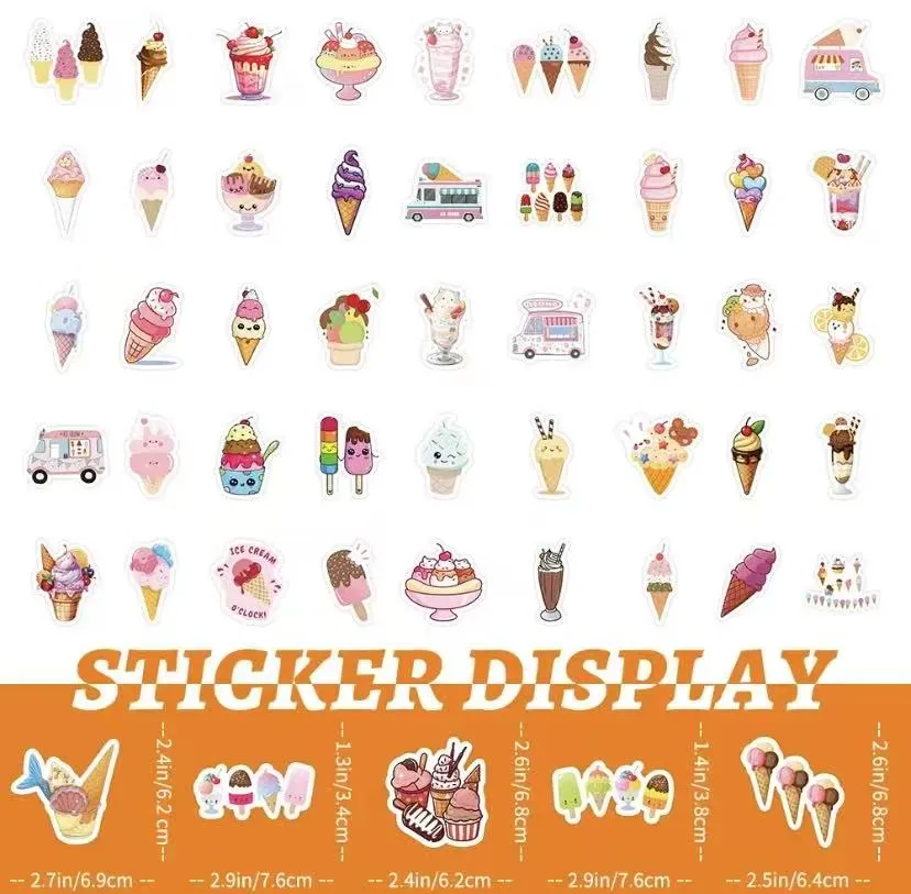 Pelekat ais krim ini yang dihasilkan oleh JoJo Pack. Ia mempunyai unsur -unsur ais krim yang berbeza dan setiap pelekat seolah -olah memancarkan aroma yang sejuk dan manis, dengan serta -merta menanam barang -barang anda dengan daya hidup musim panas.