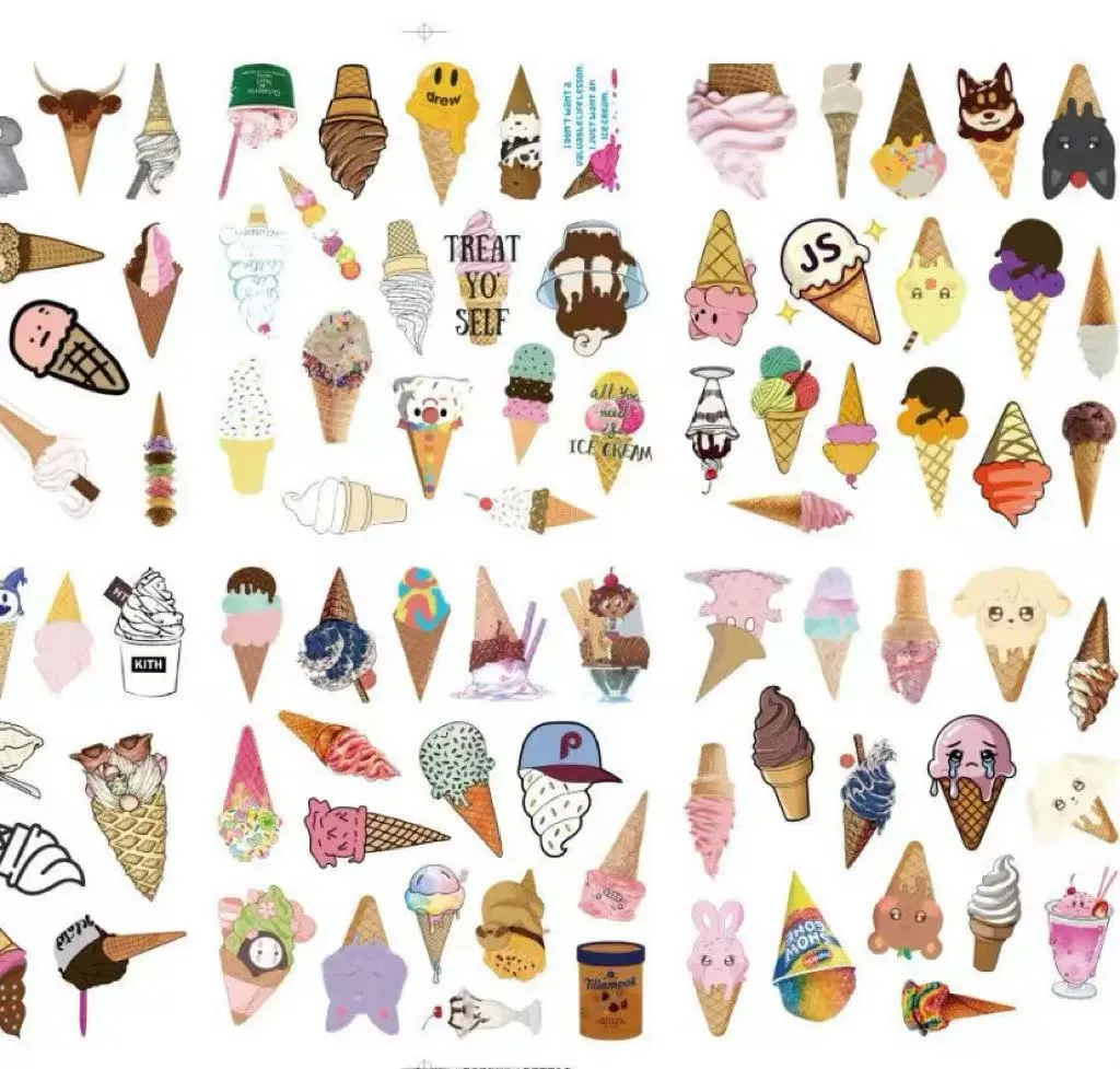Corak yang kaya dan unik:50 corak yang berbeza tanpa pengulangan, meliputi berpuluh -puluh kategori dan gaya ais krim, memenuhi pelbagai keperluan kreatif.
