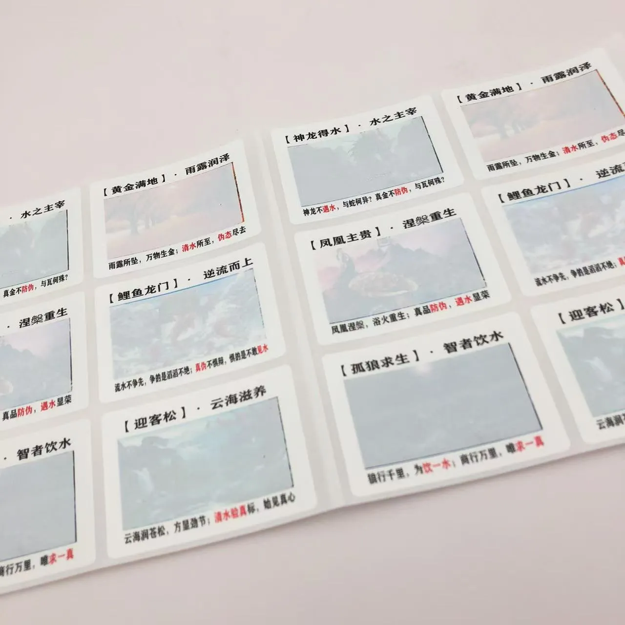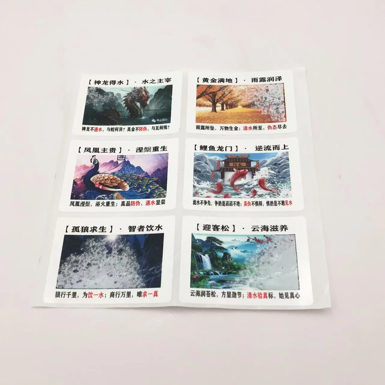 A label sensitif airbahan pintar yang dicetak dengan struktur dakwat berasaskan air khas. Apabila terdedah kepada air atau cecair lutsinar lain, ia cepat menyerap lembapan, menyebabkan label menjadi hampir lutsinar dalam masa kira-kira 1 saat—mendedahkan corak atau teks tersembunyi. Selepas cecair menyejat, beberapa jenis kad boleh kembali ke keadaan asalnya untuk kegunaan berulang.