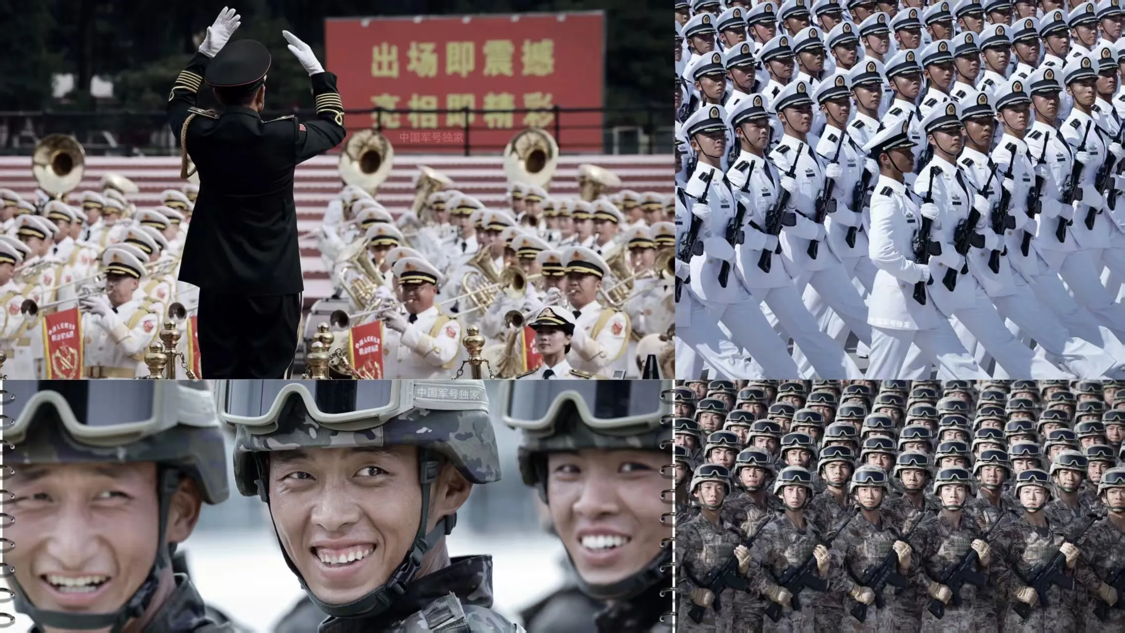 Di Dataran Tiananmen, 45 formasi dan eselon diluluskan secara urutan, dan sebuah band tentera bersama yang terdiri daripada lebih daripada seribu pegawai dan askar memainkan bunyi kuat era.