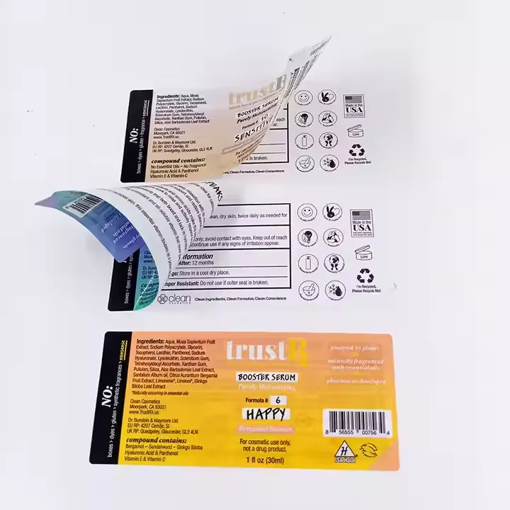 Label pelbagai lapisan kini digunakan secara meluas dalam kosmetik, produk kimia harian, produk kanak-kanak, mainan, industri peralatan elektronik dan elektrik, pasar raya, logistik, dan industri anti-pemalsuan. Dengan perkembangan pasaran dan peningkatan tuntutan kesedaran pengguna, label berbilang lapisan akan menjadi trend dan telah menjadi label arus perdana.