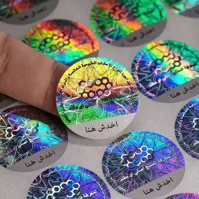 Pelekat laser yang disesuaikan yang dihasilkan oleh JoJo Pack diperbuat daripada bahan PVC berkualiti tinggi sebagai pangkalan. Bahan ini mempunyai fleksibiliti yang sangat baik, rintangan haus dan rintangan air. Kami menawarkan pilihan penyesuaian penuh dari reka bentuk corak, saiz, bentuk.