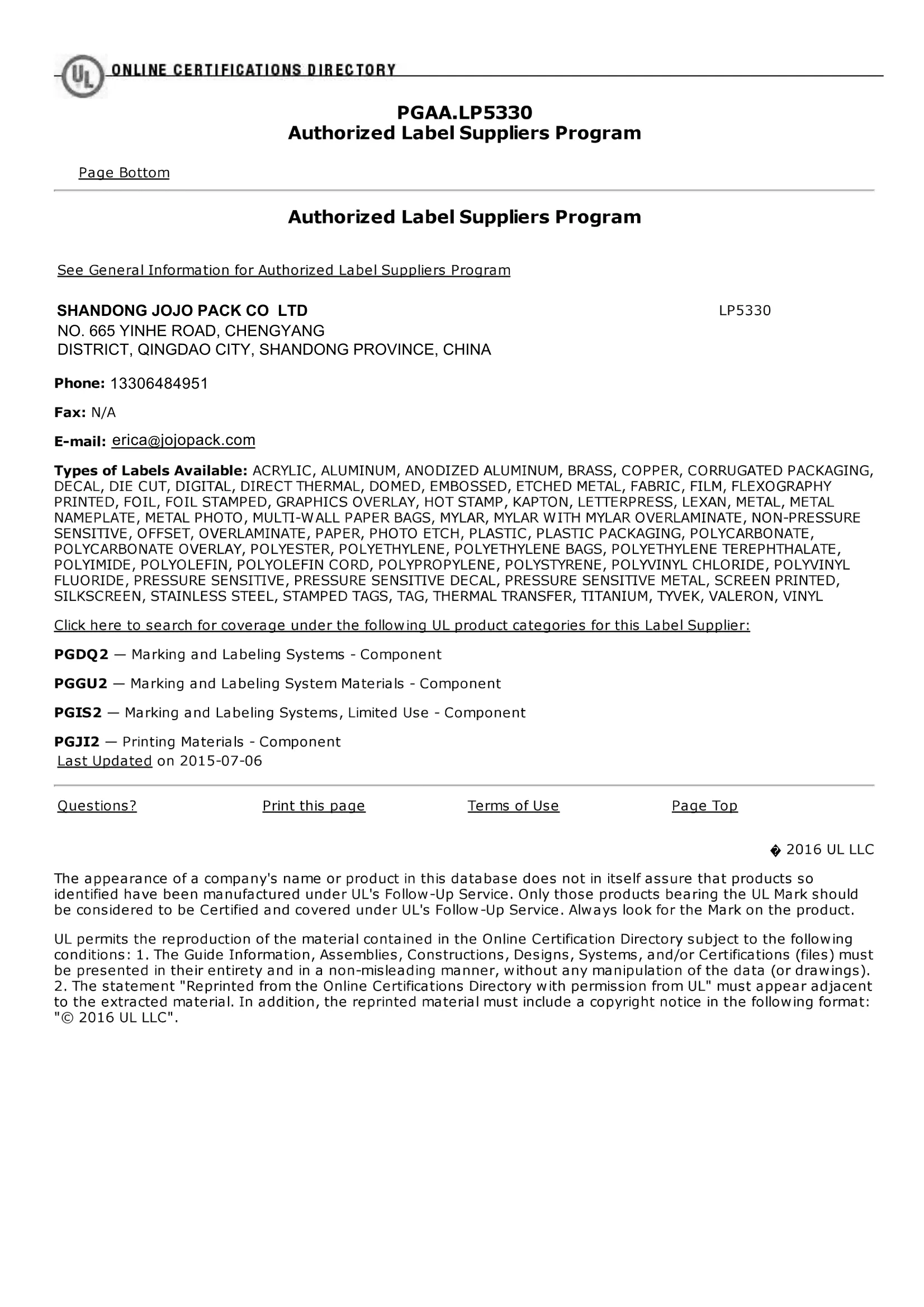 JoJo PackMempunyai bengkel 18,000 meter persegi, dilengkapi dengan pasukan profesional yang meliputi reka bentuk, pemprosesan, dan R & D. Pelekat dan label kami memenuhi piawaian pensijilan yang ketat, termasuk sistem pengurusan kualiti ISO 9001, serta pensijilan CMA, FSC, UL, dan SGS.