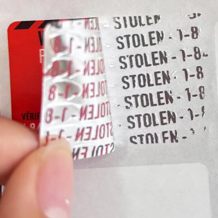 Kesan anti-pemalsuan yang ketara:Sebaik sahaja label dikeluarkan secara haram, perkataan "tidak sah" akan kelihatan jelas dan tidak dapat dipulihkan, yang membolehkan penghakiman langsung sama ada produk itu telah diganggu, menjadikannya sukar bagi pemalsu untuk meniru.