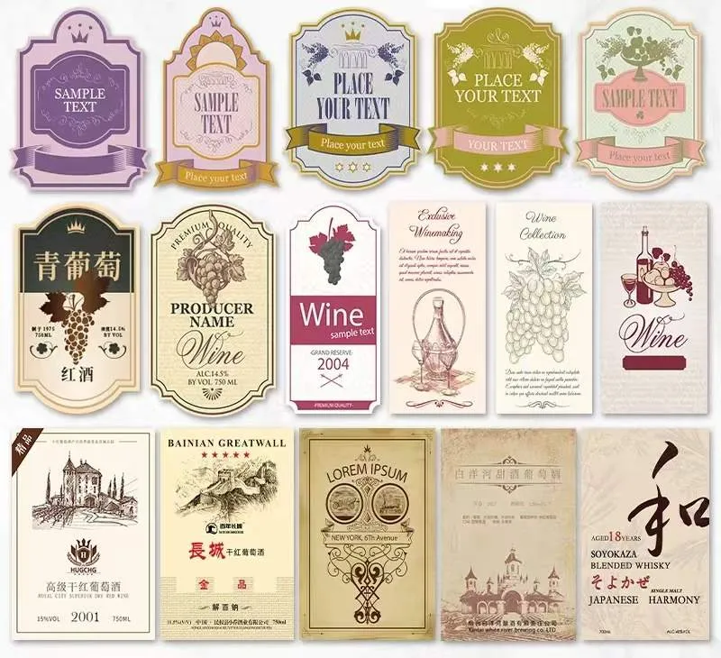 Kandungan label botol wain termasuk jenis atau pelbagai wain, tempat asal, tahun, kandungan alkohol, kandungan bersih, maklumat pengeluar atau pengimport, dan untuk wain yang diimport, nama dan alamat pengimport akan disenaraikan. Label wain Jojo Pack akan menyenaraikan nama anggur dan alamat pengeluaran; Terdapat juga penyata amaran atau pematuhan, serta peringatan mengenai sekatan umur untuk anak -anak di bawah umur. Kandungan peribadi yang didorong oleh jenama dan cerita membantu jenama menonjol dan menarik pengguna, biasanya dicapai melalui penyelesaian yang disesuaikan. Label wain adat JoJo Pack, melalui teknik percetakan yang sangat baik, menyerlahkan kandungan teras wain, dan biasanya meninggalkan kesan yang berkekalan.