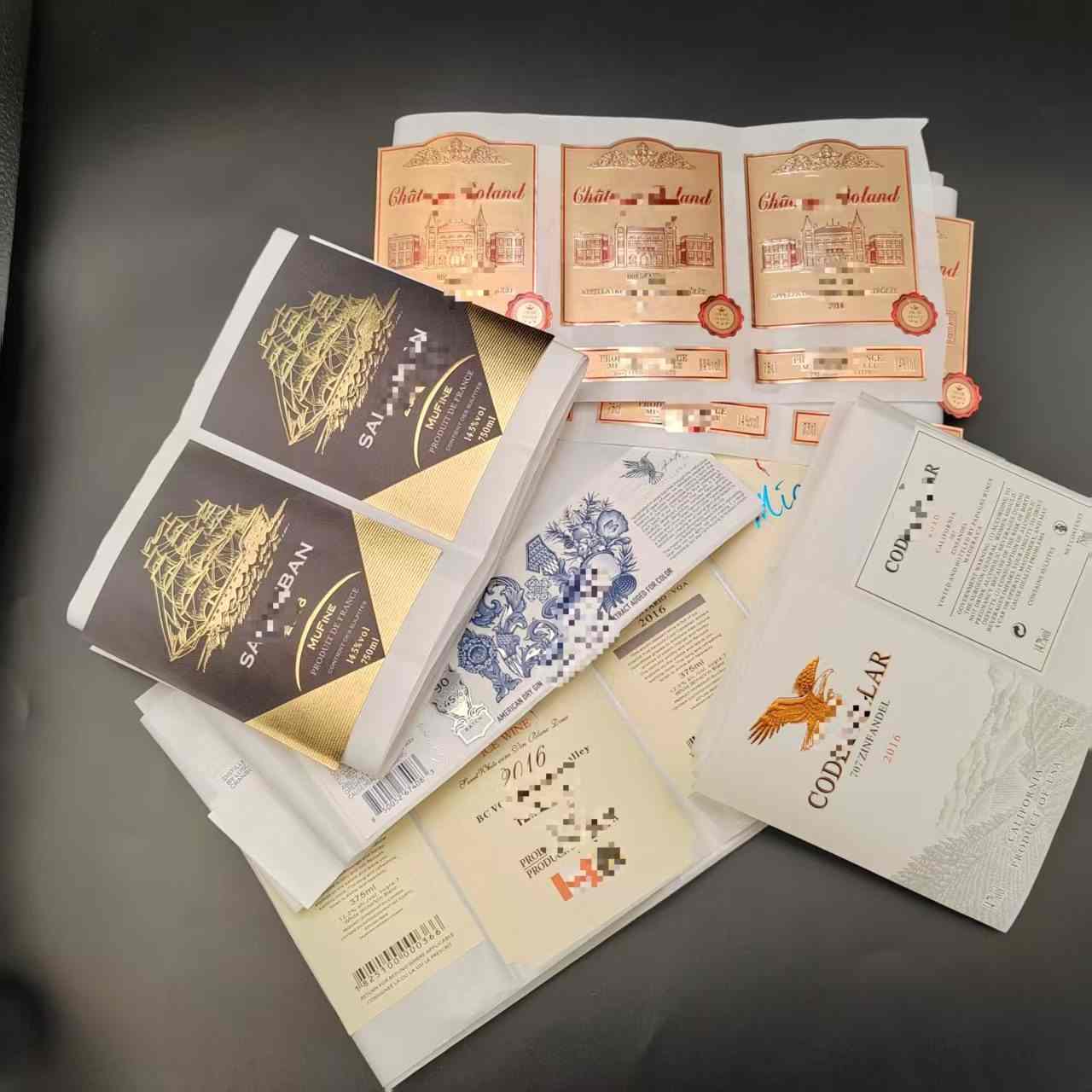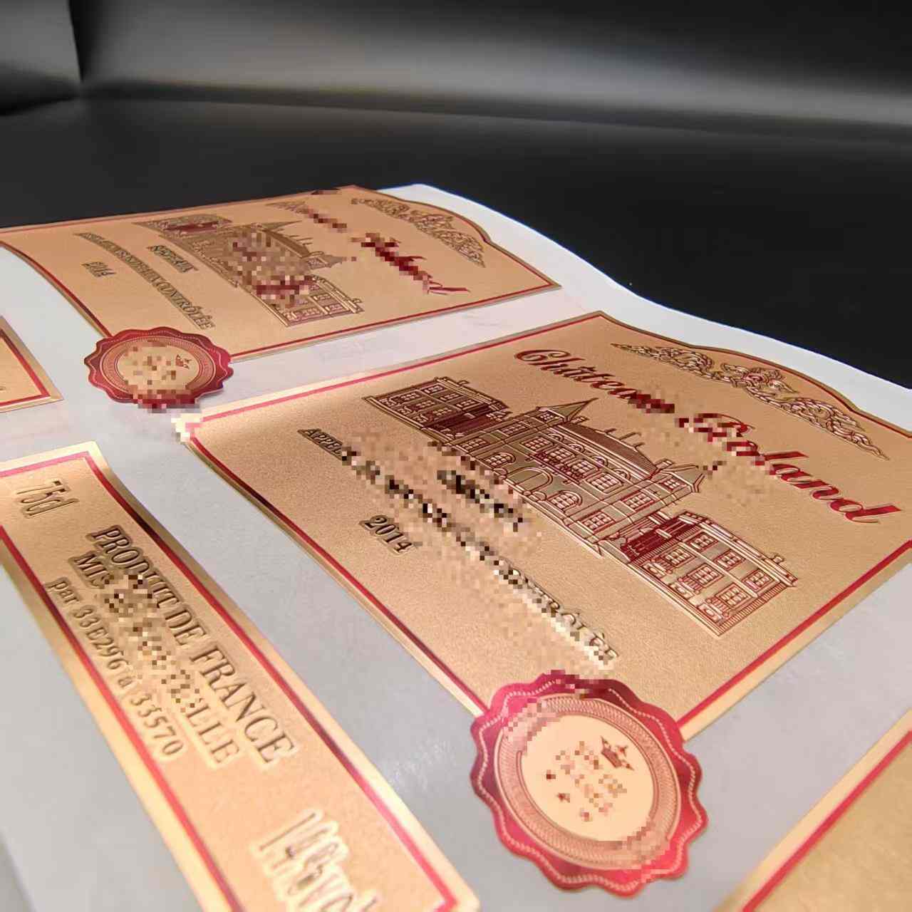 Pelekat botol wain diperbuat daripada bahan PVC berkualiti tinggi, label wain Gilded Watch PVC mempunyai air yang sangat baik dan rintangan kelembapan.