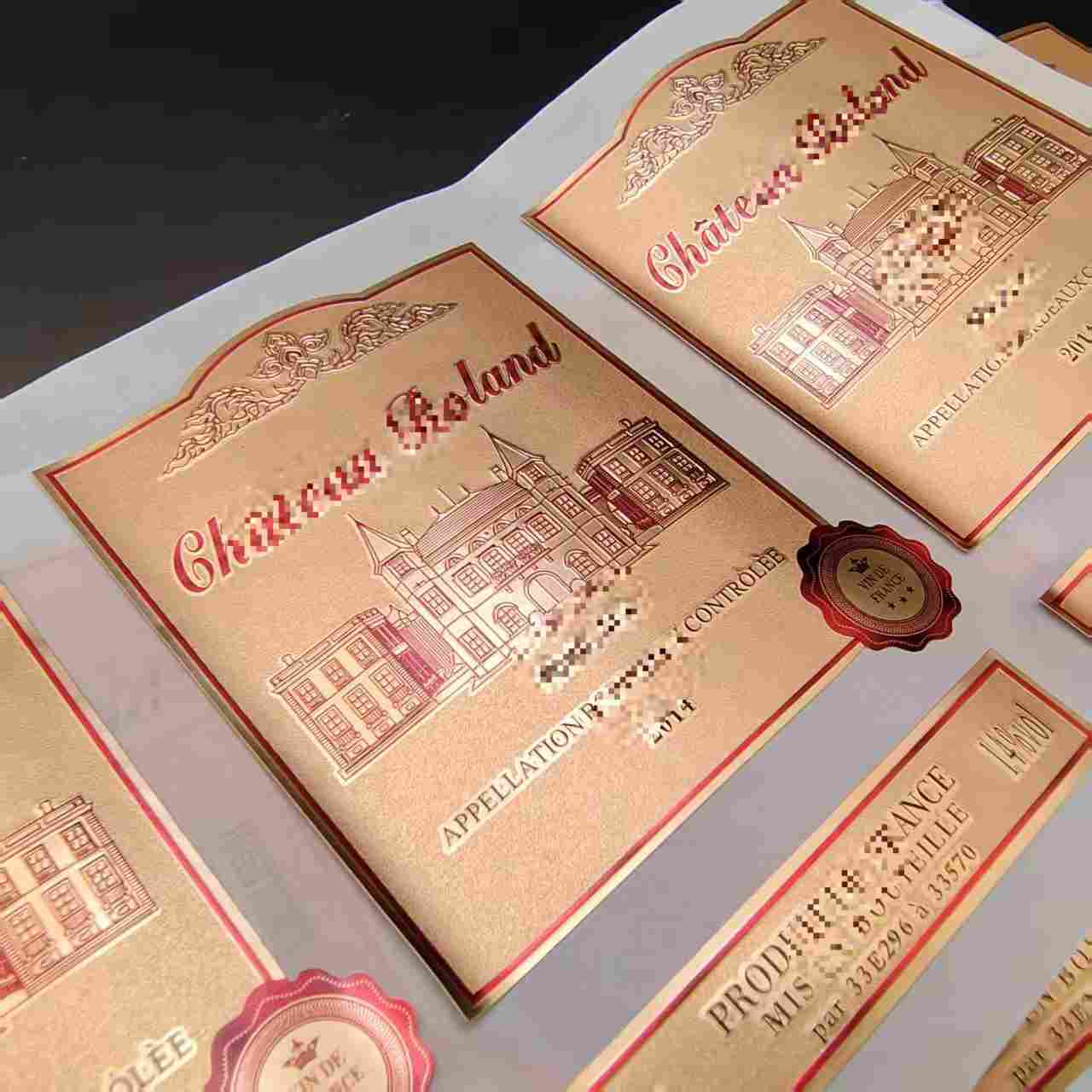 Integrasi Gilded menambah tekstur mewah dan elegan ke label wain. Sama ada menggunakan warna emas, perak, atau warna gilding logam yang lain, ia boleh membuat kontras yang menarik dengan elemen reka bentuk label (seperti logo jenama, corak, atau teks), membuat label menonjol di rak kedai.
